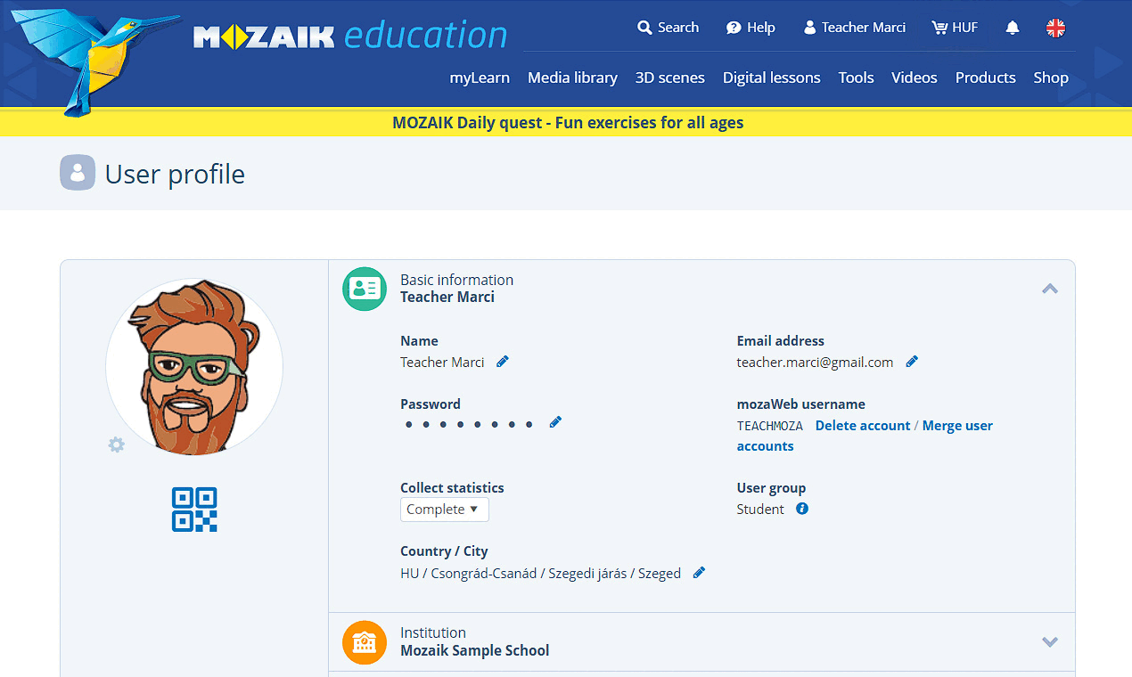 Всички потребителски профили в mozaWeb са свързани с някоя Потребителска група, която може да бъде Учител или Ученик.