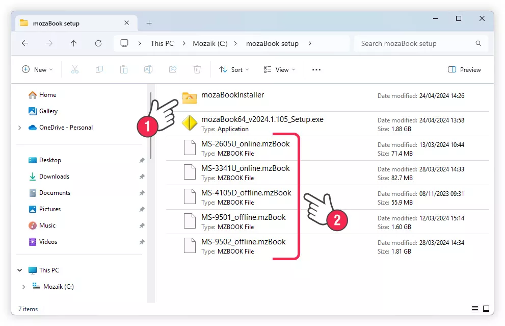 Ако папката е до инсталаторът при започване на инсталирането (1),тогава липсващите компоненти ще бъдат изтеглени не от интернет, а от папката mozaBookInstaller.