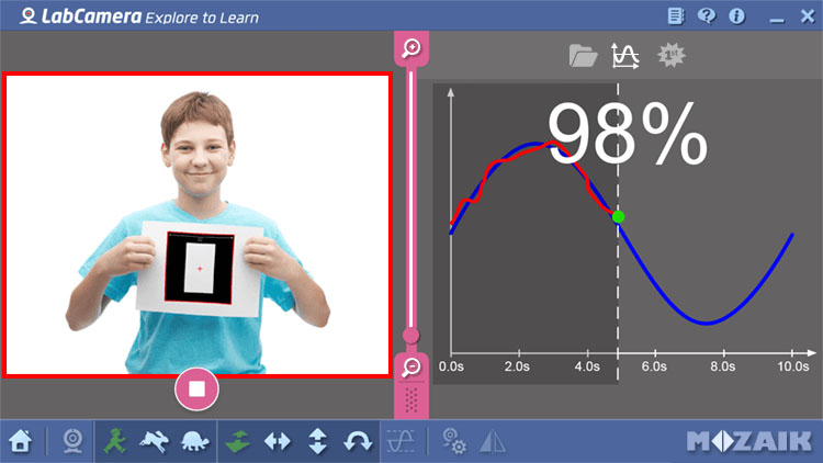 After selecting an object for tracking, you will need to calibrate your movement area to make sure that the object's movement can reach highest and lowest values of your curve. Once calibrated, you can use Graph Challenge as many times as you want provided that the placement of your camera and the tracked object is the same as during calibration.