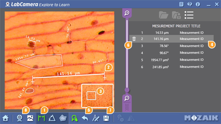 Save in image format|You can save your work as plain image, image along with your measurements and as a measurement protocol page. |