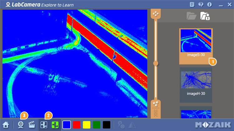 Your recorded image will be added to the thumb list. The image file will be saved to your external storage in "/ LabCamera/Pathfinder" folder. |