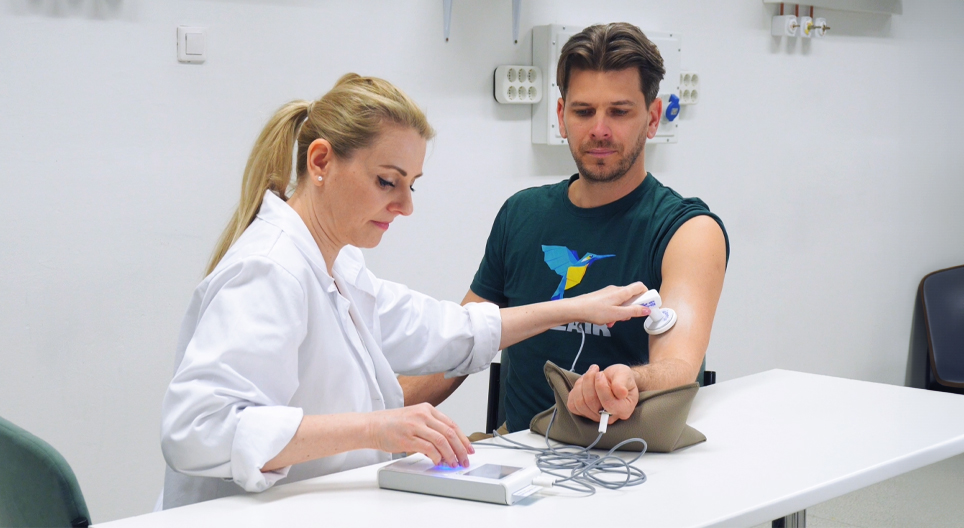 Electromechanical therapy that uses pulsed electrostatic energy to reduce swelling and pain and induce enhanced healing.