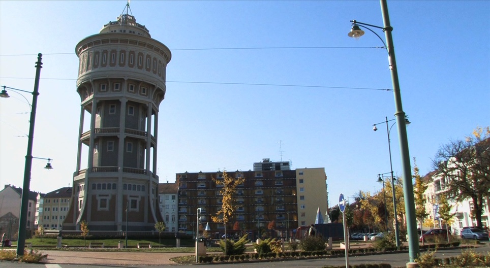 Изчисляване на височината на класическа водна кула с рулетка и слънчева светлина.