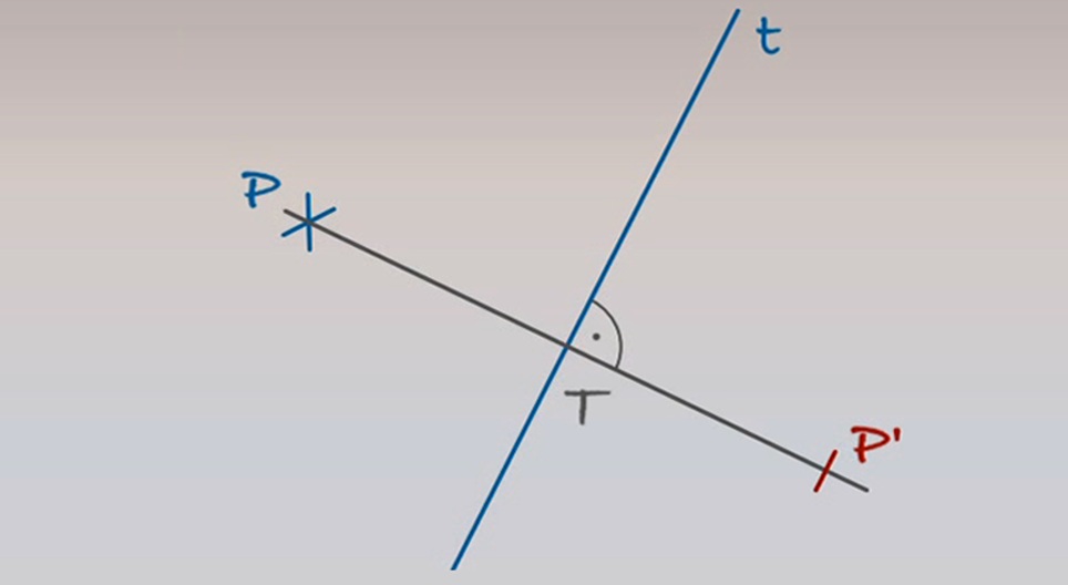 Дадена е огледална ос t и една точка Р. Да начертаем огледалния образ на точката - P', спрямо оста t!