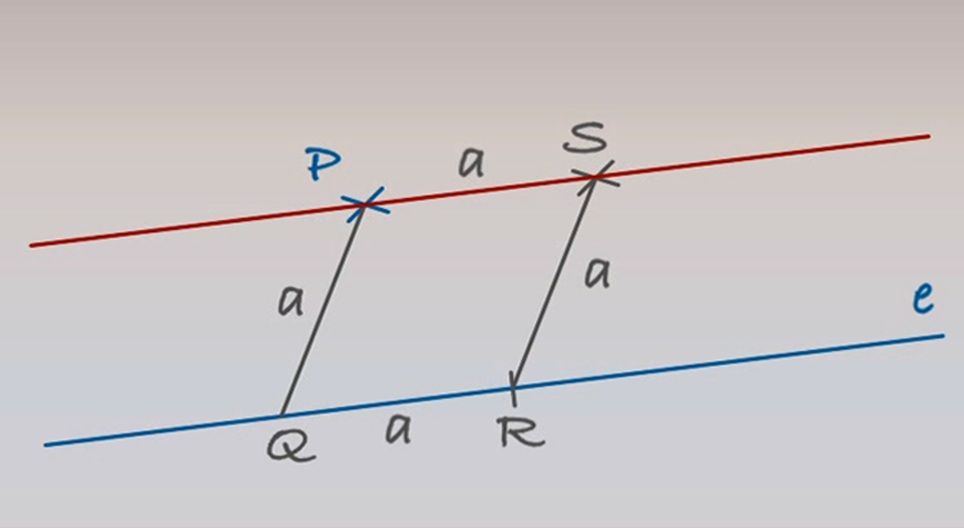 Да построим ромб, на който едната страна лежи да правата е, а точката P е единият връх на срещуположната страна.